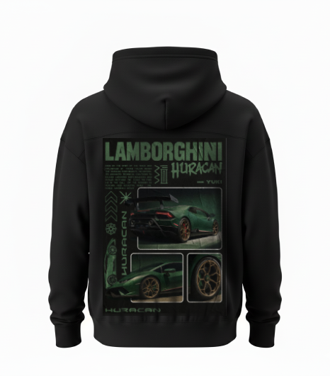 Show your supercar passion with this premium Lamborghini Huracán black hoodie. Made from warm, soft fleece, it’s perfect for daily wear and stylish enough to be a trendy hoodie for men too. Featuring a bold Huracán graphic, this is the best hoodie for car lovers, streetwear fans, and anyone who wants a standout automotive look.
